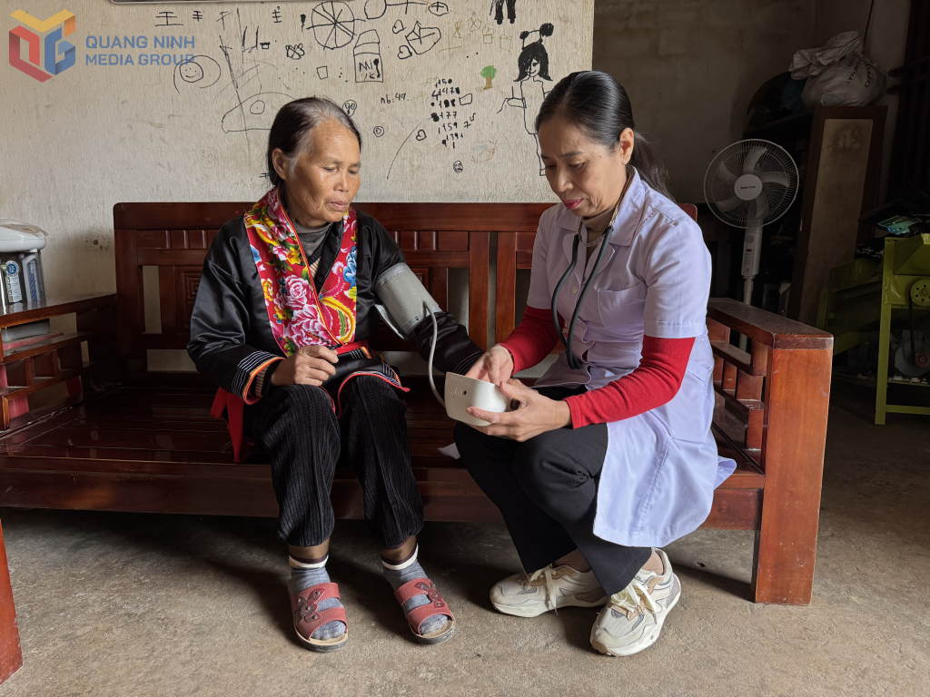 Cán bộ Trạm Y tế xã Ba Chẽ thăm khám sức khỏe cho người cao tuổi trên địa bàn.
