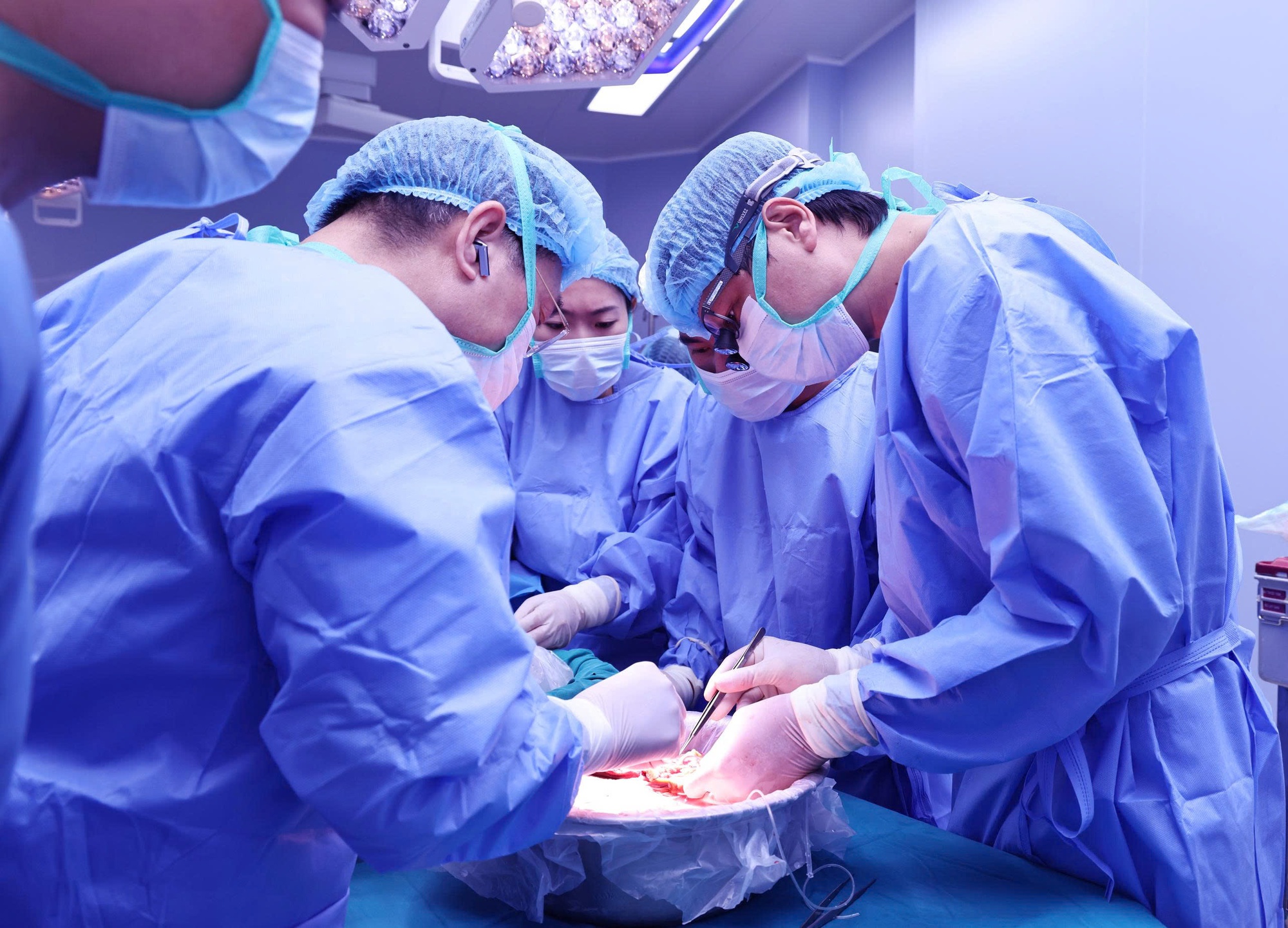 Các bác sĩ thực hiện kỹ thuật chia gan để ghép cho 2 ca bệnh hiểm nghèo - Ảnh: VGP