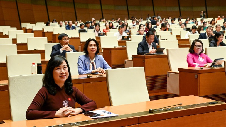 Quốc hội làm việc tại hội trường. (Ảnh: DUY LINH)