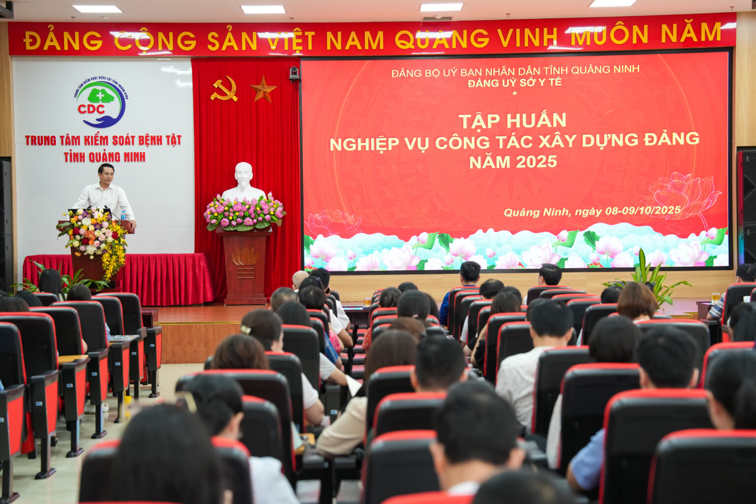 Trong hai ngày 08 và 09/10/2025, tại Hội trường tầng 8, Trung tâm Kiểm soát bệnh tật tỉnh Quảng Ninh, Đảng ủy Sở Y tế tổ chức Hội nghị tập huấn nghiệp vụ công tác xây dựng Đảng năm 2025 cho 172 cán bộ, đảng viên thuộc Đảng bộ Sở.