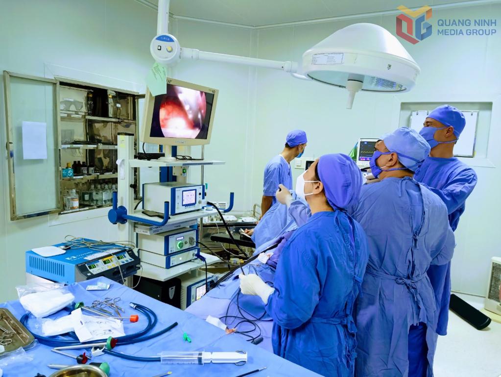 Bác sĩ Bệnh viện Đa khoa khu vực Móng Cái cơ sở 3 thực hiện tán sỏi cho bệnh nhân.
