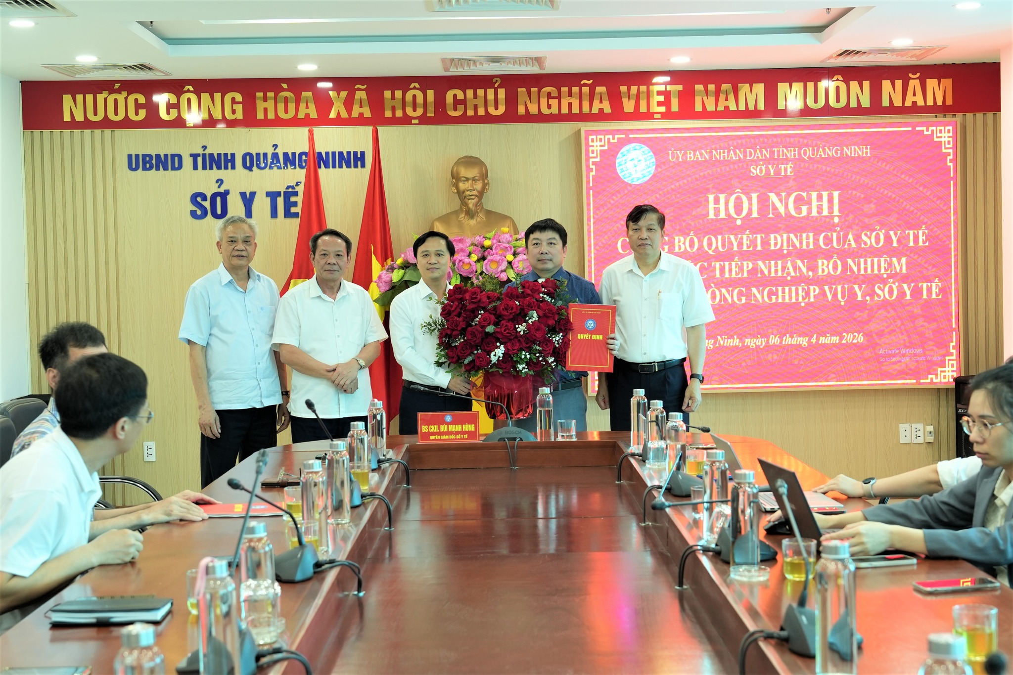 Chiều ngày 6/4/2026, Sở Y tế Quảng Ninh tổ chức hội nghị công bố và trao quyết định về công tác cán bộ. BSCKII Bùi Mạnh Hùng, Quyền Giám đốc Sở Y tế chủ trì hội nghị.