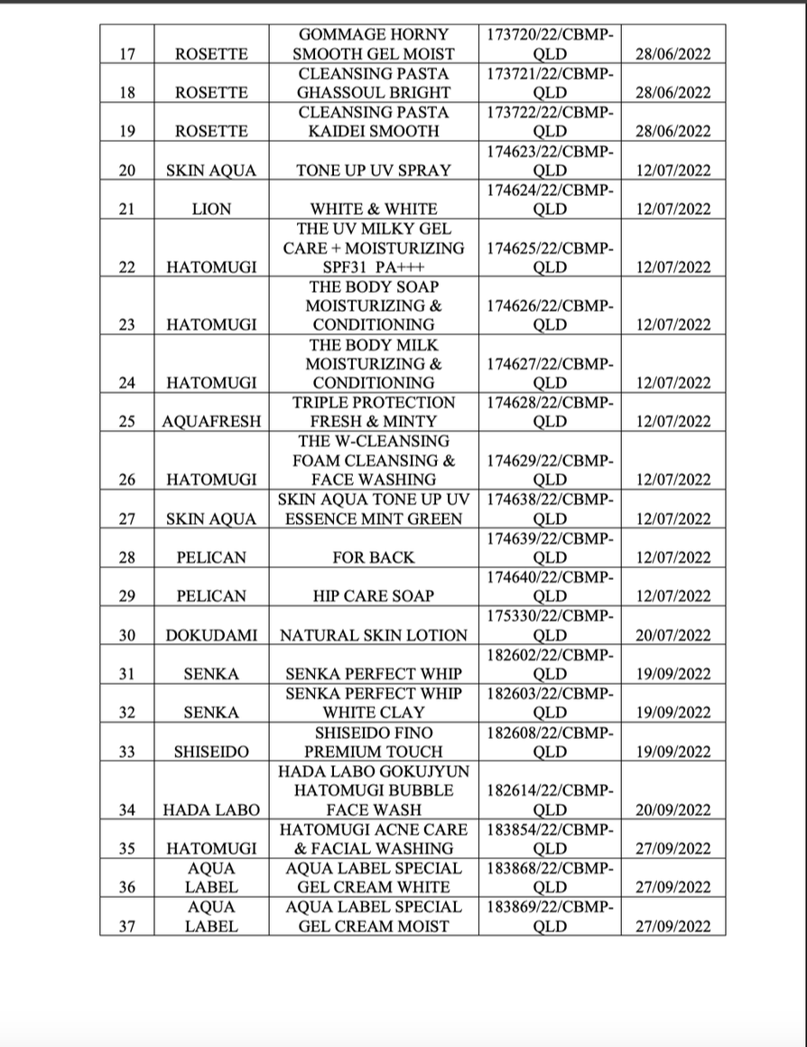 Danh mục 37 sản phẩm mỹ phẩm bị Cục Quản lý Dược buộc thu hồi và tiêu huỷ.