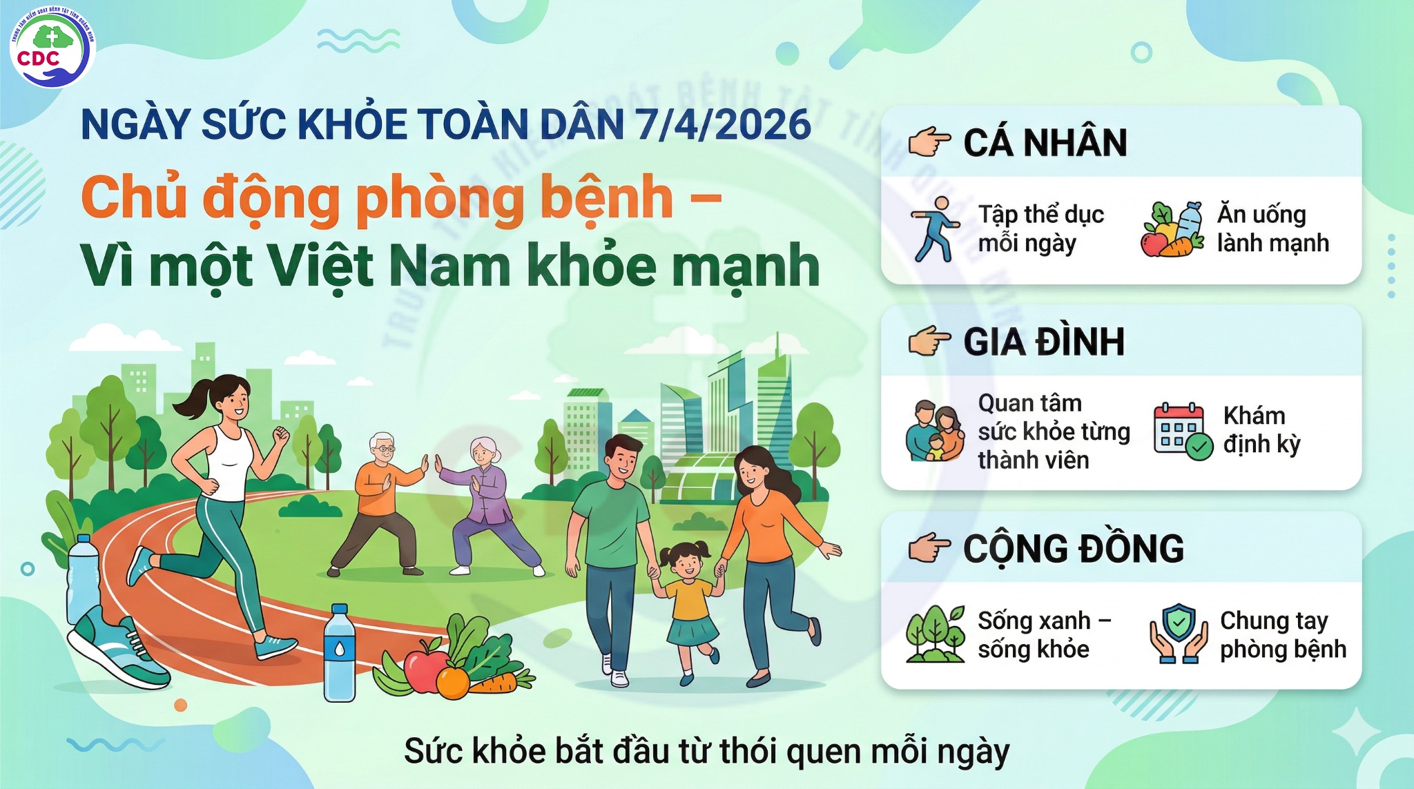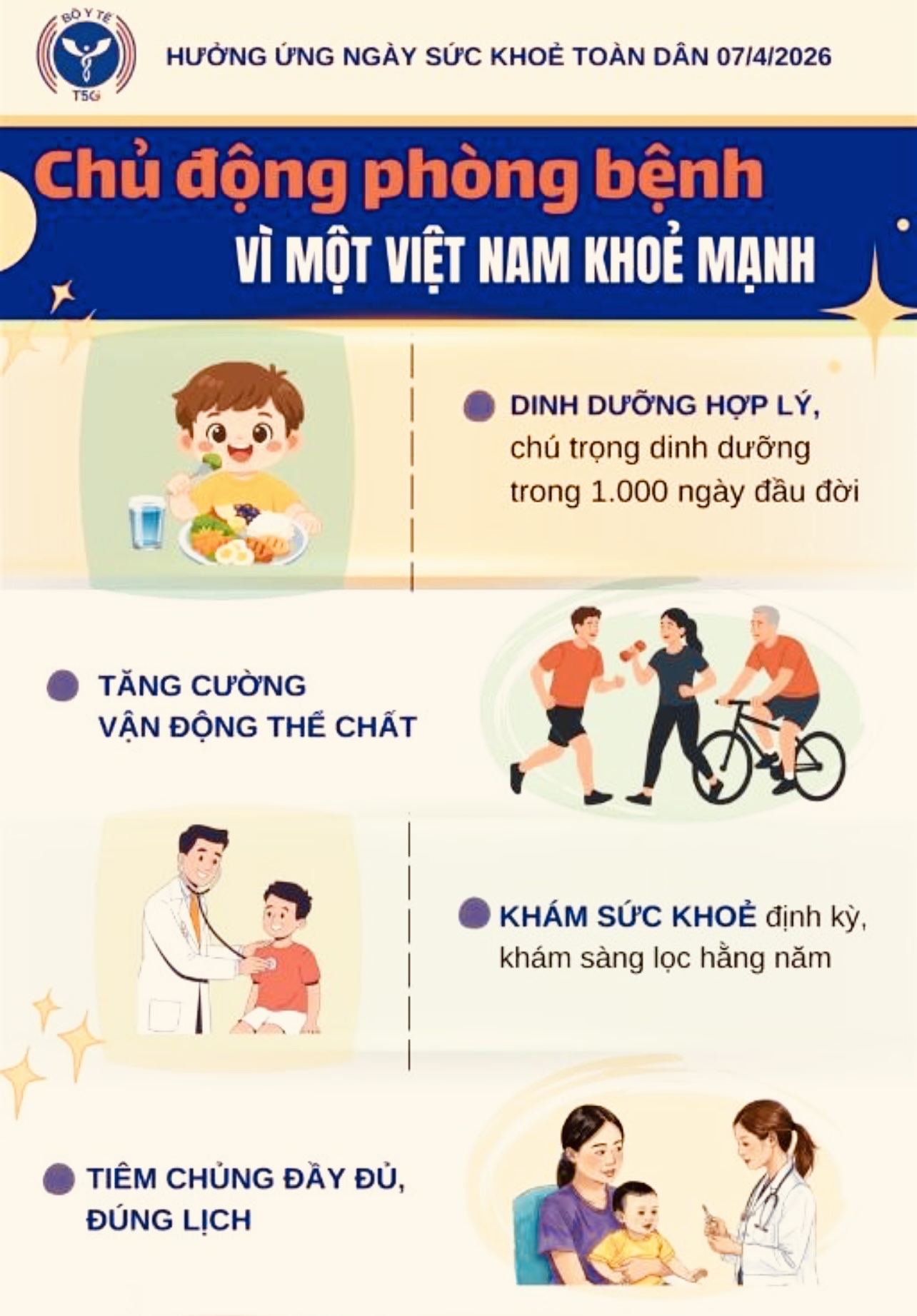 Với chủ đề “Chủ động phòng bệnh – Vì một Việt Nam khỏe mạnh”, Ngày Sức khỏe toàn dân năm nay thể hiện rõ quyết tâm của Đảng, Nhà nước và ngành Y tế trong việc đặt người dân vào vị trí trung tâm của hệ thống chăm sóc sức khỏe. Đây cũng là sự hưởng ứng chủ đề Ngày Sức khỏe Thế giới của Tổ chức Y tế Thế giới năm 2026 – “Hành động toàn cầu vì bao phủ chăm sóc sức khỏe toàn dân”, hướng tới mục tiêu mọi người dân được tiếp cận dịch vụ y tế chất lượng, công bằng và bền vững.