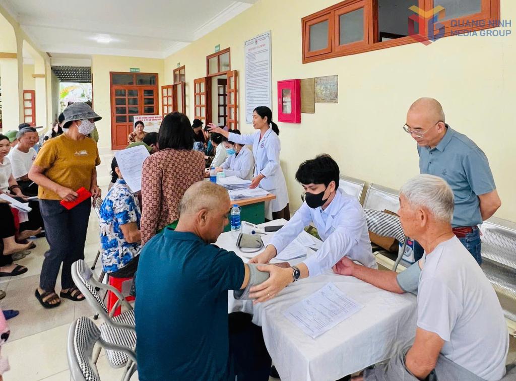 Các y, bác sĩ của CDC Quảng Ninh và Bệnh viện Đa khoa khu vực Tiên Yên phối hợp khám sàng lọc miễn phí các bệnh không lây nhiễm (tim mạch, tăng huyết áp, đái tháo đường, ung thư vú, ung thư tuyến giáp) cho người dân xã Đông Ngũ.
